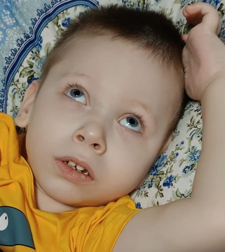 Даниил родился на сроке 40,4 недель🥺. Беременность моя протекала хорошо👌. На сроке 20,6 недель на УЗИ плода, поставили под вопросом: агенезия полости прозрачной перегородки, частичная агенезия мозолистого тела😭💔. На следующий день мне сделали кордоцентез, затем пришел результат 46XY❤️🩹, что означало, что никаких хромосомных патологий у ребенка нет🙏. Родился мой сыночек абсолютно здоровым ребенком, 8/9 Апгар. В первые сутки упал сахар, с показателем 1,3 ммоль/л ребенка перевели в патологию новорожденных и недоношенных детей с диагнозом гипогликемия☹️, где он провел 6 суток. В возрасте 14 суток жизни при контрольном исследовании НСГ выявлена дилатация правого бокового желудочка. Сыночку сделали МРТ ГМ, выявили врождённую аномалию ГМ- синдром Арнольда-Киари 1 типа. В возрасте 18 суток жизни, нас выписали домой.Когда ребёнку было 3 месяца, мы ездили на консультацию к генетику, по поводу врождённой аномалии Арнольда-Киари, у сына брали генетический анализ. И спустя год пришёл результат, что у ребёнка частичная трисомия 6q27, Даня 4-ый человек с данным диагнозом на конец 2020 года. Трисомия очень редкая, к сожалению мы совсем ничего о ней не знаем, поэтому мы сами создатели прогноза на будущую жизнь. Так же сдавали полногеномное секвенирование и секвенирование по Сэнгеру, выявили поясно-конечностную мышечную дистрофию (кальпаинопатия). Врождённая аномалия ГМ синдром Арнольда-Киари, он оказался ошибочным и данный диагноз Дане "сняли". Но именно из-за чьей-то ошибки, мы узнали, что наш сын имеет генетические мутации.Сам по себе Даня спокойный и жизнерадостный, очень любит слушать музыку и сказки.Так же помимо генетических диагнозов, у Дани ещё ДЦП, ЧАЗН, эпилепсия, гипотиреоз, искривление позвоночника 3 степени.Реабилитацию мы проходим в ДРЦ "Шаг вперёд" и результатом мы очень довольны. Благодаря реабилитациям Даня многому научился, в том числе и недолго стоять. Я считаю, что это отличный результат.Я верю, что мы со всем справимся и у нашего Данечки начнется счастливая полноценная жизнь.