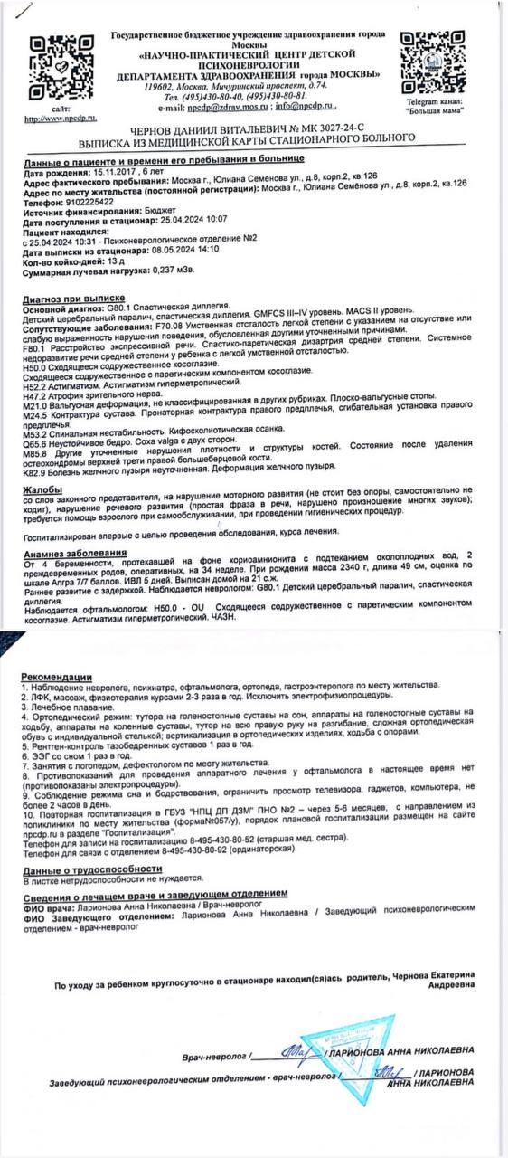 Мы переехали из Белгорода в Москву из-за опасности и войны ⚡️. Этот переезд ещё сильнее ударил по нашему положению. Сейчас мы занимаемся дома, но этого недостаточно… Я вижу, как сын хочет встать на ножки, тянется к детям, мечтает бегать 👟⚽️. Но без вашей помощи это так и останется мечтой 💔.