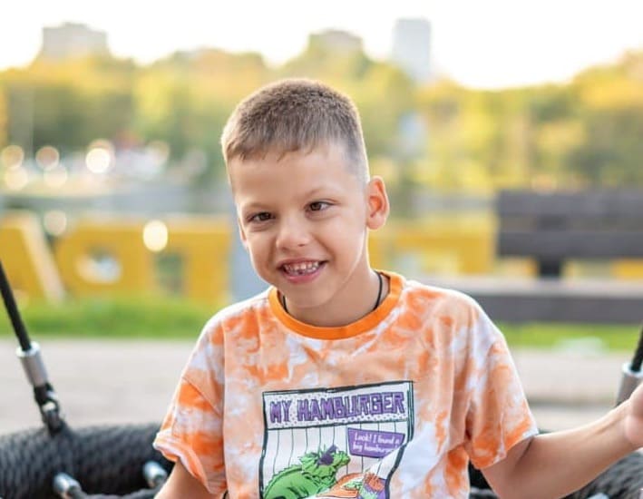 Но Даня — настоящий боец 💪. Он учился ползать по-пластунски в год и два месяца, потом смог ползать на четвереньках 🐾. И на этом всё… Сейчас ему уже 7 лет, но он по-прежнему не умеет стоять и ходить 🚶♂️❌.
