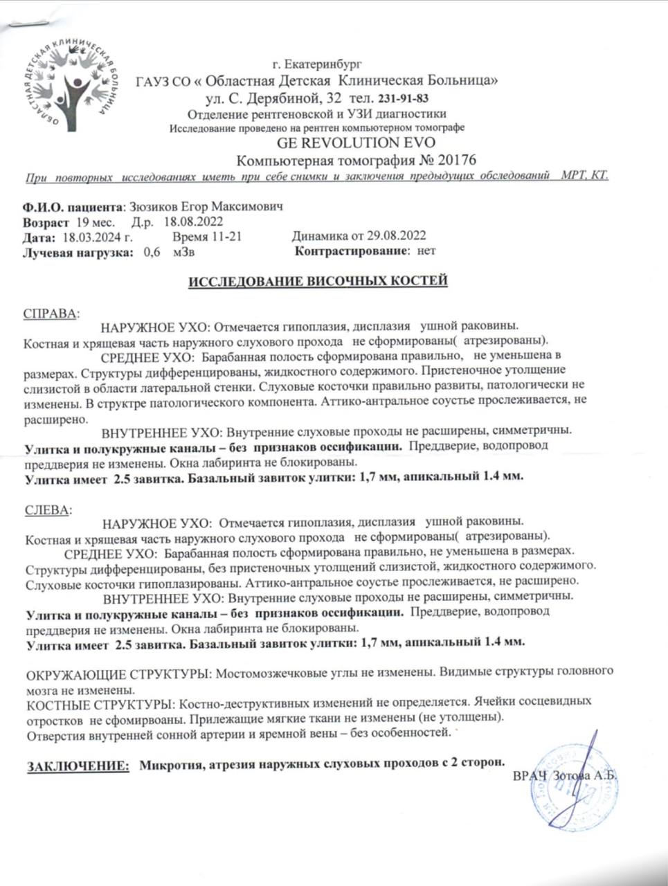 Первое КТ Егору сделали в 19 суток, пока мы находились ещё в больнице, второе — в полтора года, чтобы убедиться, что всё, что находится внутри, сформировано и функционирует правильно. 🧑⚕️