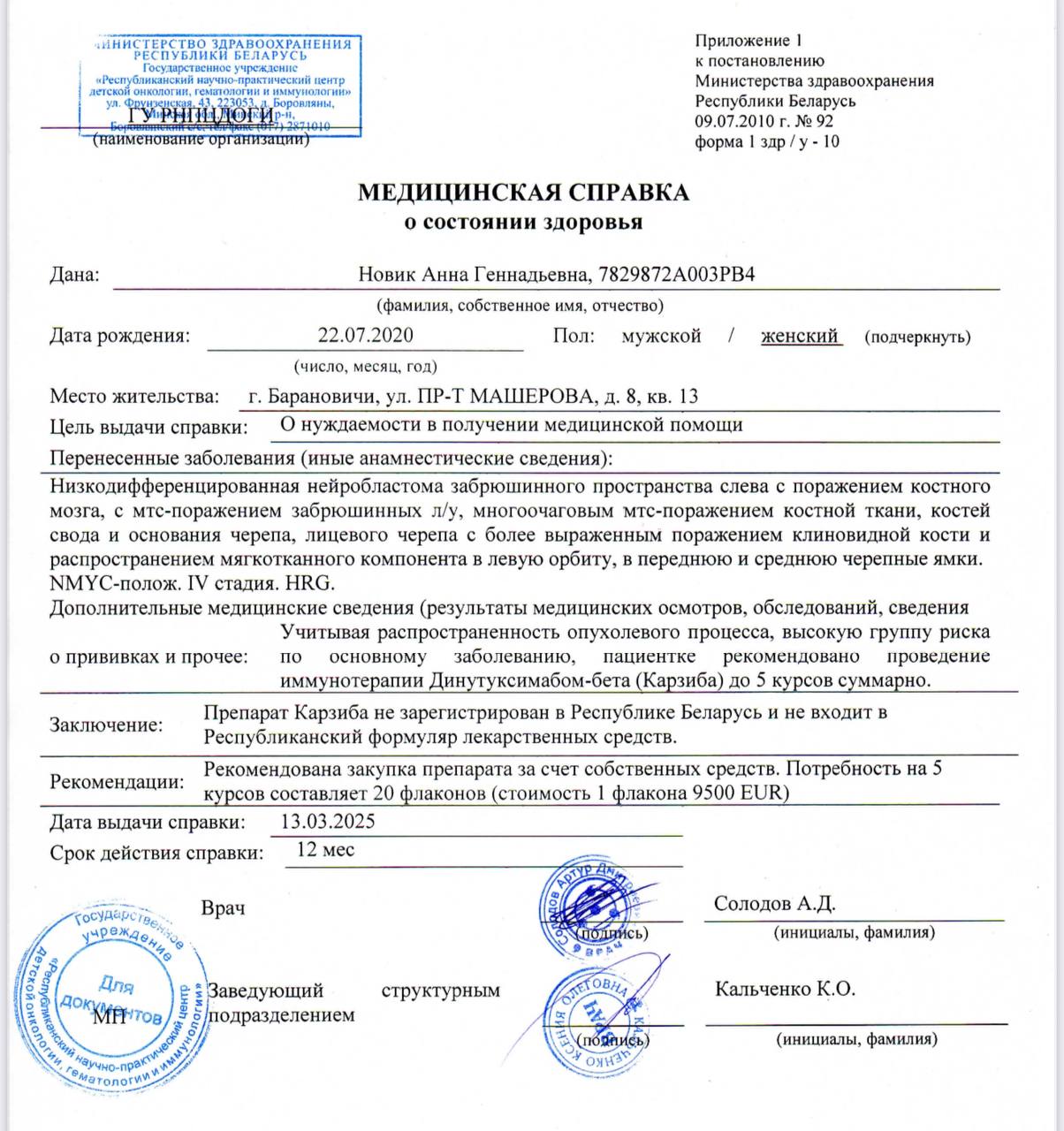 Требуется дорогостоящий препарат Динутуксимаб-бета‼️