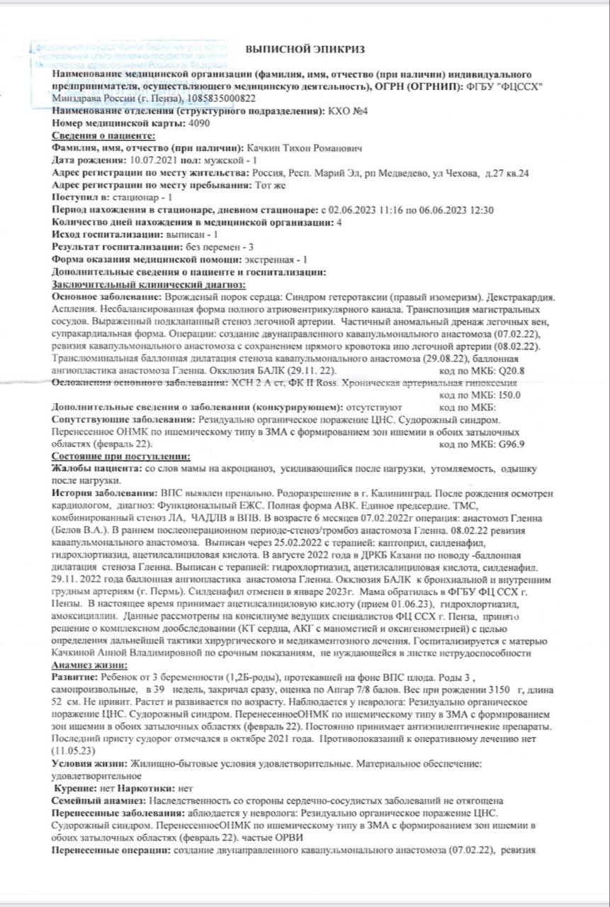 Когда нам было 6 месяцев 👶, нам сделали первую операцию (называется Гленн). После перевода в реанимацию сыну экстренно делали вторую операцию — вычищали сгустки 🏃♂️💉.