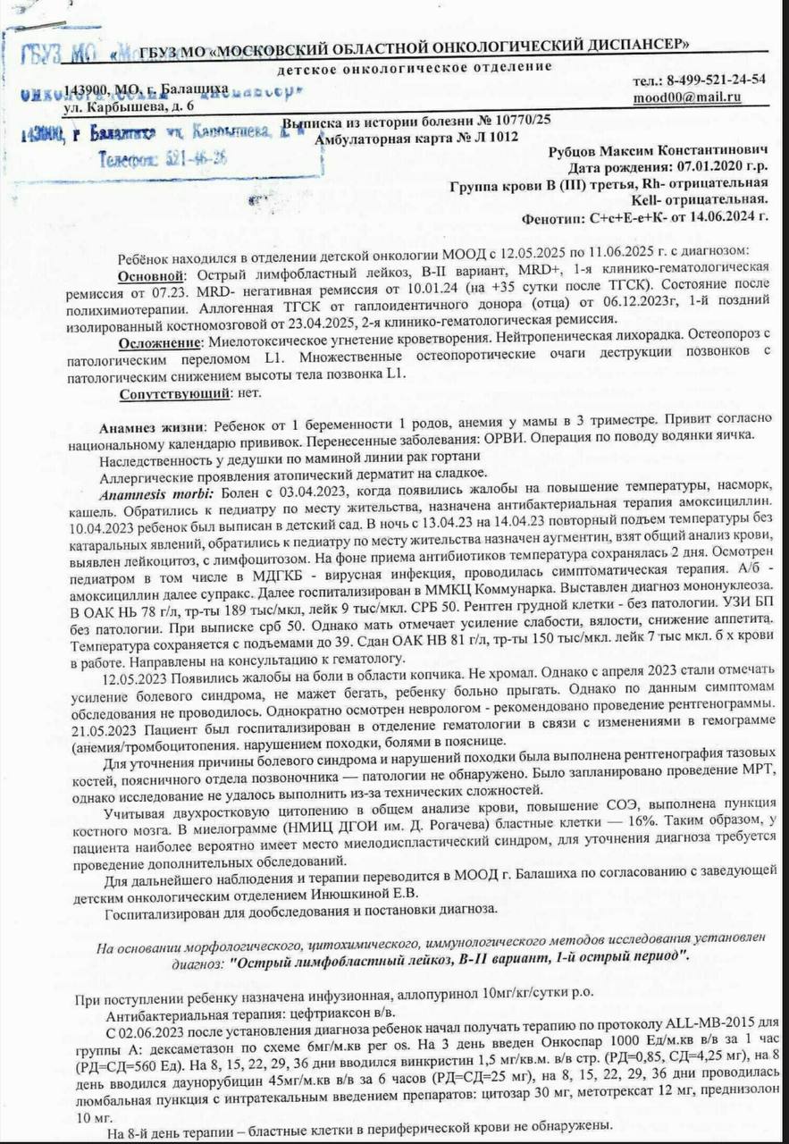 Нужна иммунотерапия 💉, чтобы закрепить результат и выйти на ТКМ от неродственного донора.
