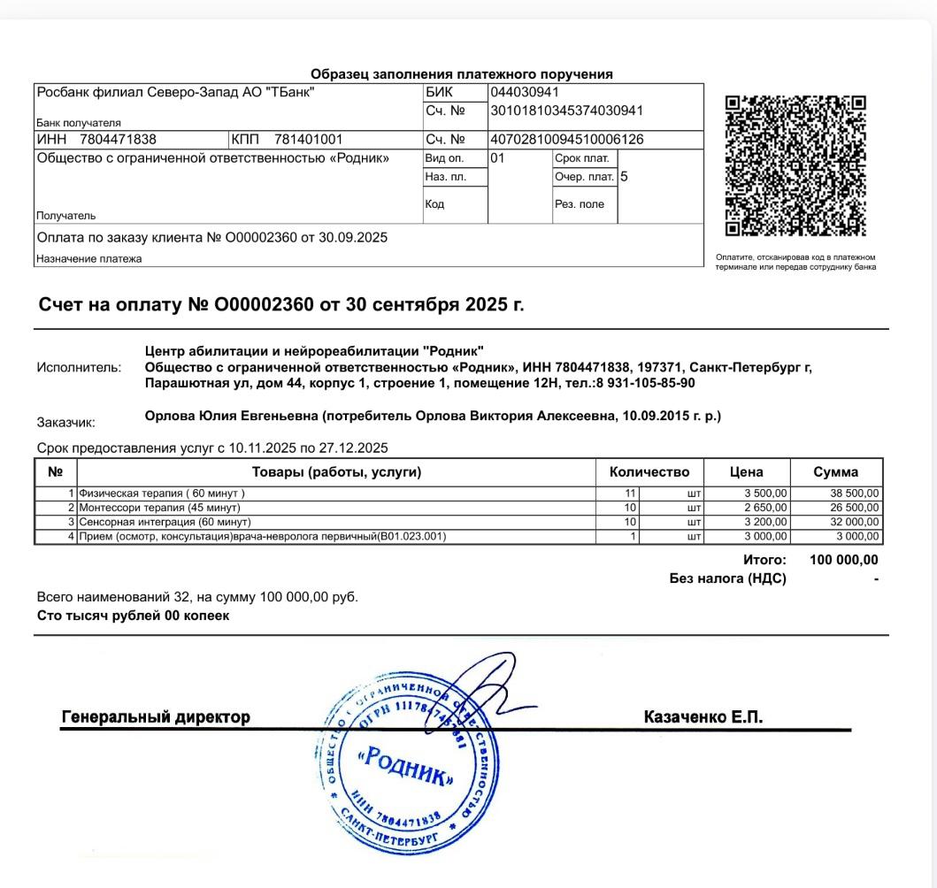 Сумма лечения — 100 000 рублей.