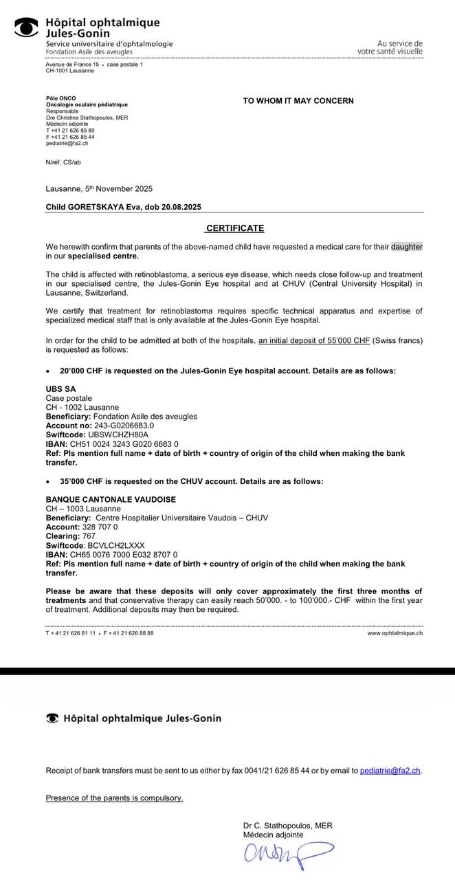 🇨🇭 Швейцарская клиника Jules Gonin готова принять Еву.