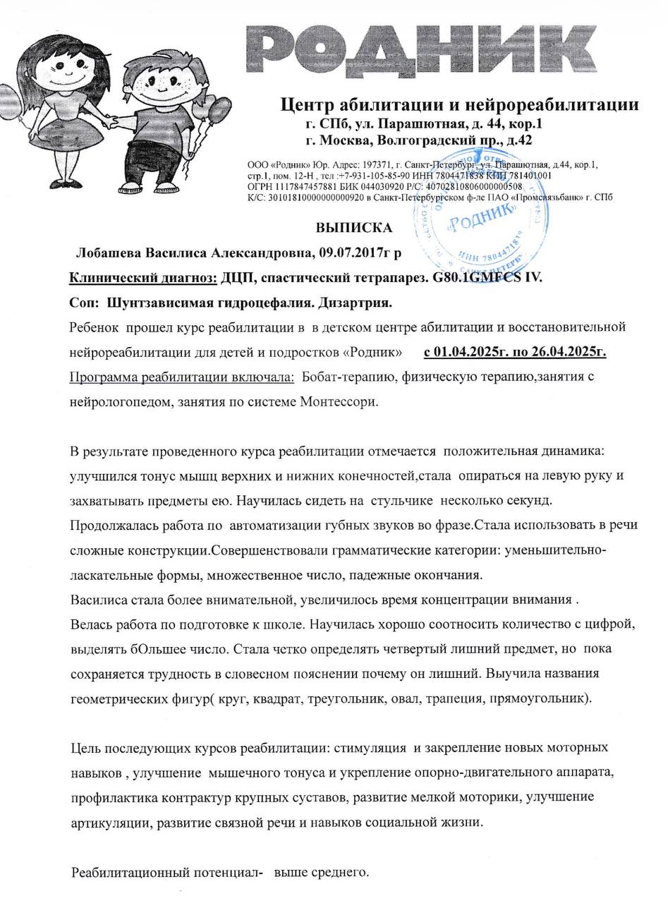 Сейчас Василисе очень нужен курс реабилитации в клинике Клиника «Первый Шаг» 😢🙏