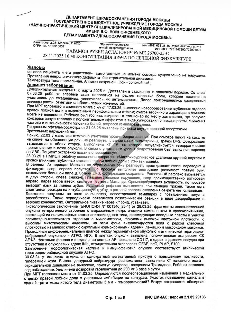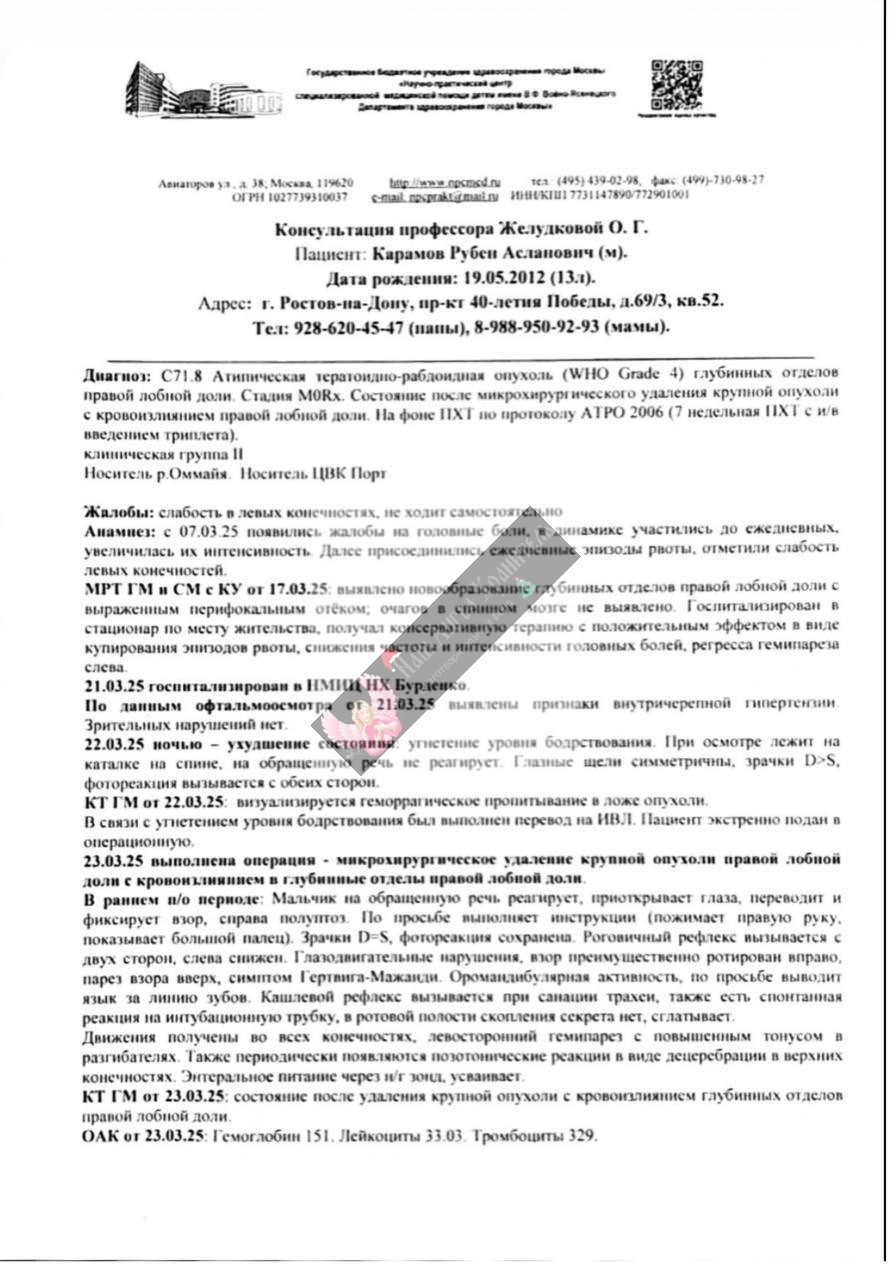 Вместо школы, друзей и обычного детства он столкнулся с тяжёлым диагнозом — атипическая тератоидно-рабдоидная опухоль глубинных отделов правой лобной доли, агрессивный рак головного мозга 💔