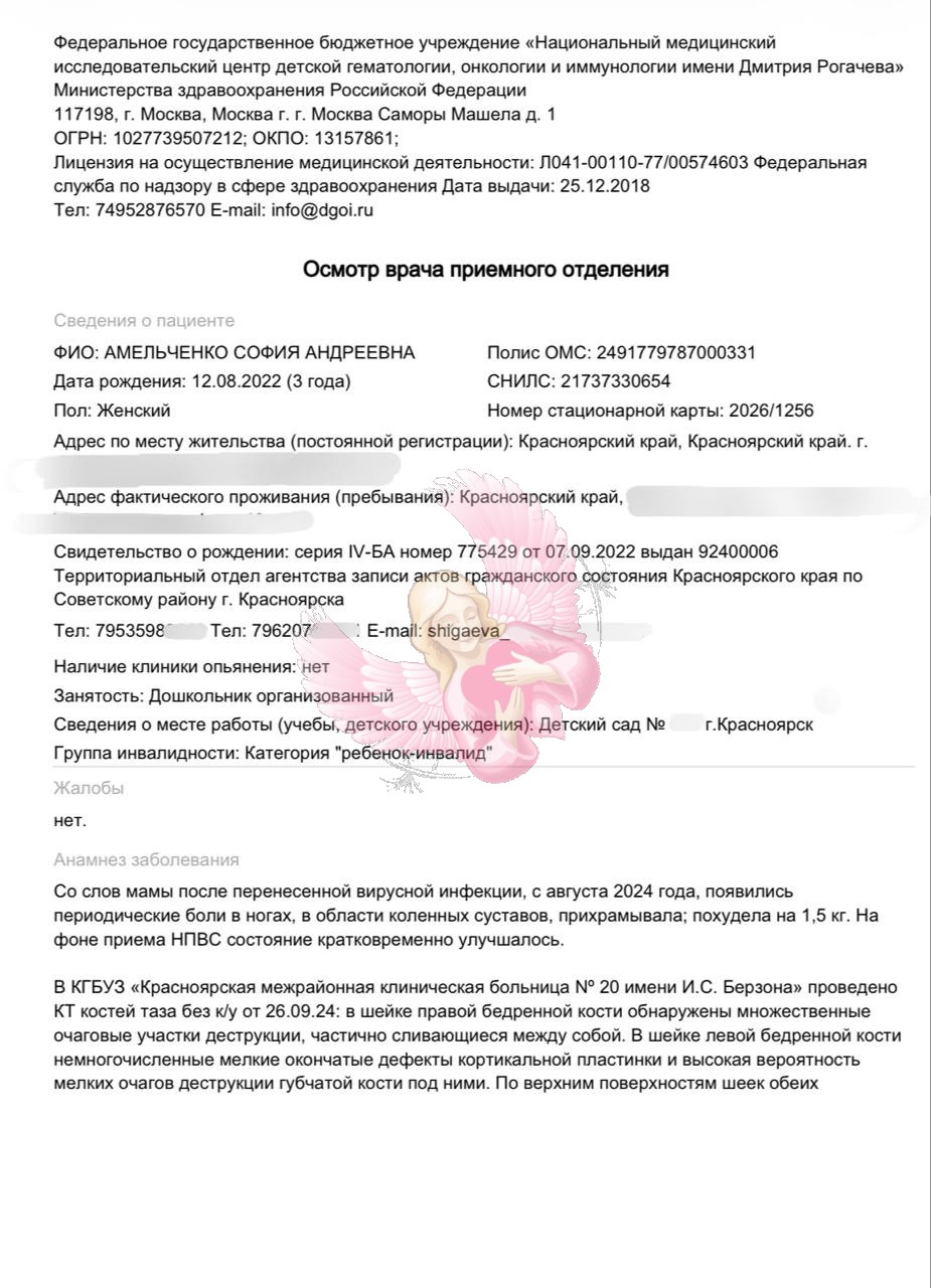 Сразу после дня рождения у Софии начали болеть ножки. Мы думали, что это усталость или последствия инфекции. Но с каждым днём нашей девочке становилось хуже… Она перестала бегать, потом едва могла ходить, плакала от боли и стремительно худела… 😭