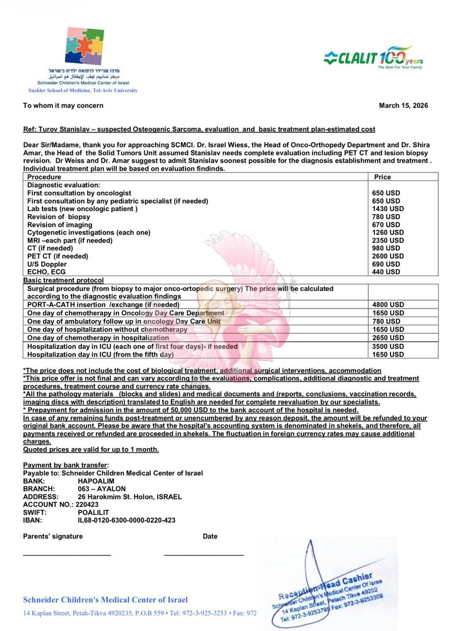 Сейчас мы находимся в Израиле, в клинике «Шнайдер». Добраться сюда было очень сложно — из-за военной обстановки и отсутствия авиарейсов. Но мы всё равно приехали, потому что это единственный шанс попытаться спасти нашего сына. 🙏