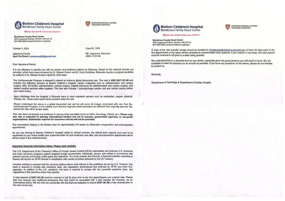 <p>Здравствуйте уважаемые наши волшебники. Лизе назначили операцию на 25 июля 2025 г. Поэтому нам необходимо не расслабляться , а поднажать , чтобы закрыть сбор, потому что перевод средств занимает много времени. Еще необходимо подавать документы на лицензию OFAC , которая необходима для перевода средств в Boston Children’s Hospital. Также нам предстоит собеседование в посольстве в Казахстане , с целью получения виз. Все это состоится благодаря помощи каждому из Вас ! Благодарим Вас от всего сердца за Вашу доброту !</p>