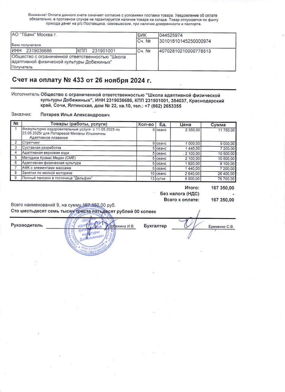 Мы обратились в "Школу АФК Добежиных" в Сочи, где есть не только стандартные процедуры, но и иппотерапия, дельфинотерапия, а также морской воздух, который поможет улучшить её иммунитет. 🌊💖 Но стоимость лечения неподъёмная для нас, и мы не можем оплатить это сами. 😢
